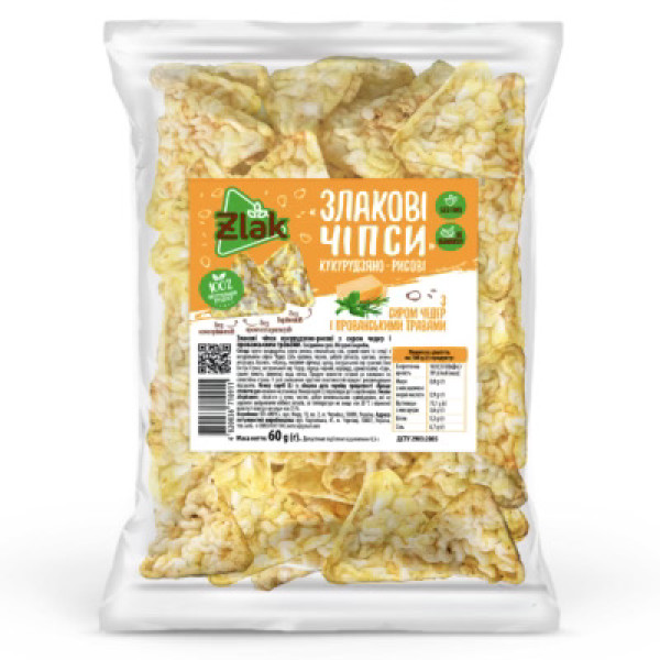 Злакові чіпси кукурудзяно-рисові з сиром чедер, 60г "Zlak"