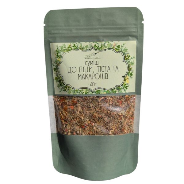 Приправа містить ці основні інгредієнти, а також інші, які надають аромат і пікантність піці. А саме: кунжут, петрушка, кріп, паприка червона.