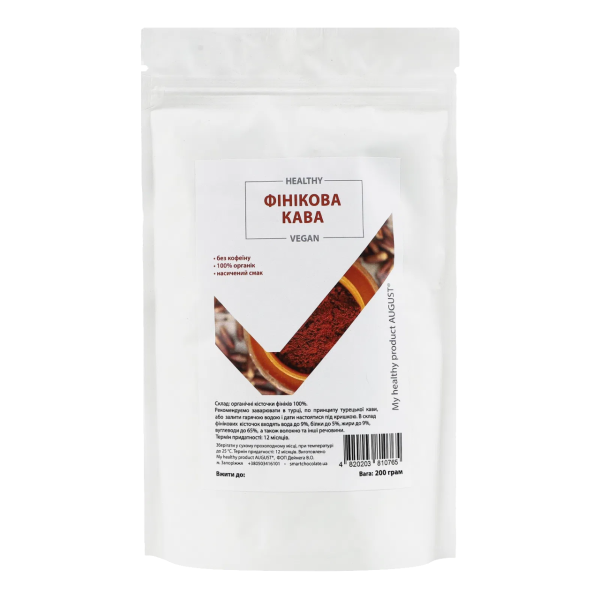 Фінікова кава відразу підкорює своїм ароматом та насиченим смаком. На смак дуже нагадує натуральну каву, аромат трохи з шоколадним відтінком, колір при заварюванні ідентичний кольору кави. З усіх можливих замінників кави - фінікова - найближча до смаку звичайної кави.