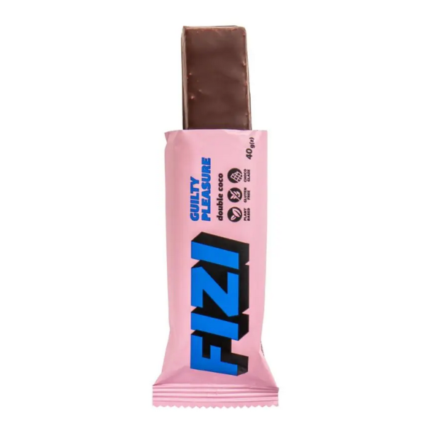 Шоколадний батончик FIZI Double Coconut виготовляється без додавання цукру. До складу входять: кокосова стружка (50%), екстракт яблучного соку концентрований, шоколадна глазур (25%). Також продукція не містить глютену.