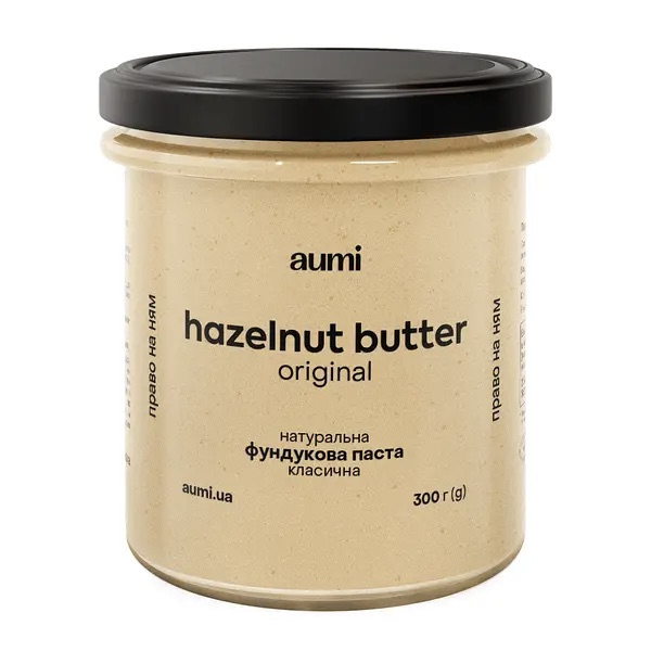Натуральна класична фундучная паста "AUMI". Солодкий, ароматний і рідний - це український сортовий фундук, вирощений на родючій землі Вінницькій області. Тепер фундукова паста AUMI робиться саме з нього. Горіх обсмажується в інноваційній печі за американською технологією. Він фонтанує в потоці гарячого повітря всього кілька хвилин, не торкаючись стінок камери (при звичайному обсмажуванні горіх крутиться в барабані півгодини, підгорає і окислюється). Потім ядра швидко охолоджуються і перемелюються на низьких обертах, щоб виключити нагрівання і окислення олії. Смак пасти виходить оксамитовим, а аромат - насиченим.