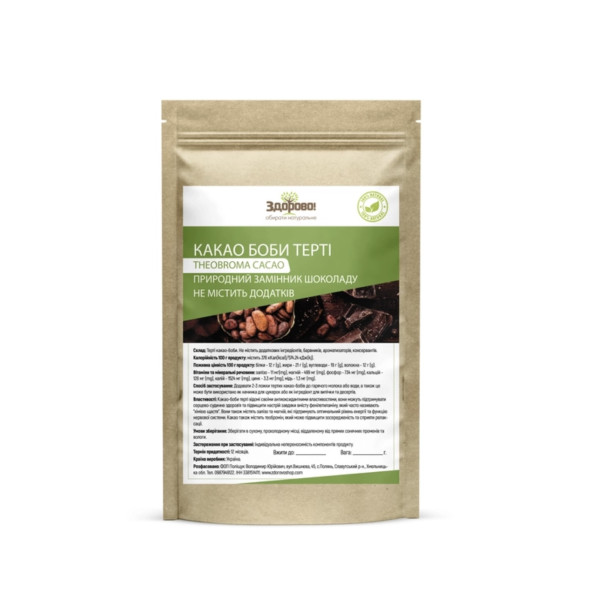 Терті какао боби містять велику кількість поліфенолів, антиоксидантів та флавоноїдів, які сприяють підвищенню імунітету, зниженню рівня холестерину та підтримці здоров'я серця та судин. Вони також містять магній, калій, залізо та інші мікроелементи, необхідні для здорового функціонування організму.