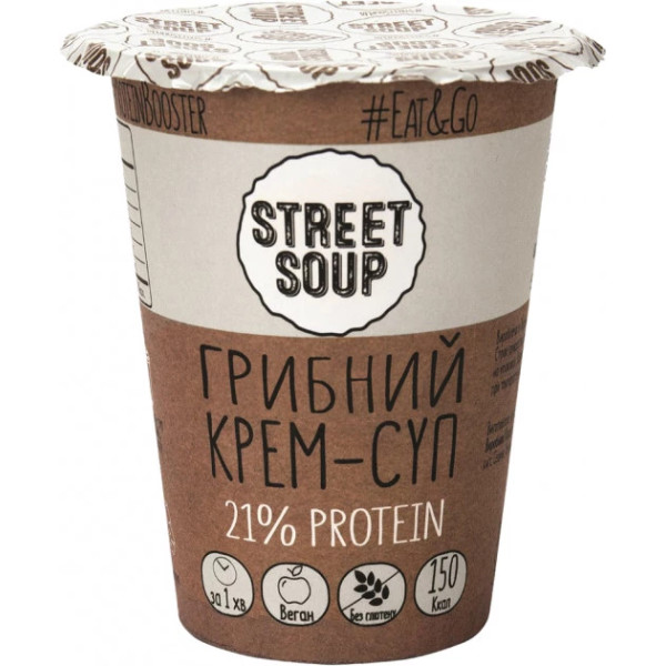 Грибний крем-суп Street Soup - це натуральний суп миттєвого приготування.