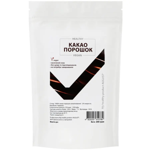 Какао порошок (упаковка), 200г "Healthy Vegan"