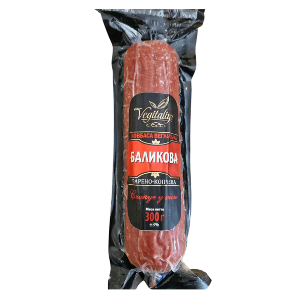 Ковбаса Vegitaliya — це повністю рослинний продукт, приготований за технологією варено-копчених ковбас, з яскравим ароматом копчення та збалансованим смаком.