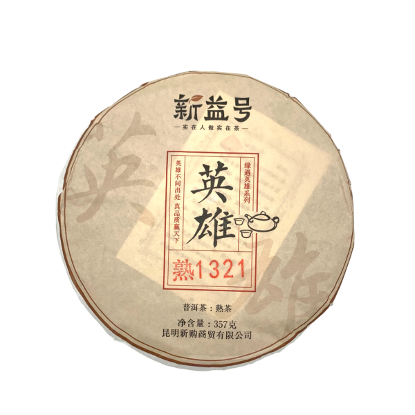 Китайський чай, шу пуер, Герой 1321, торгової марки Синь Ї Хао. Китай, Юньнань, Менхай, Бура гора. Назва фабрики: чайна фабрика Xishuangbanna Honghai Tea Co., Ltd.. Приготовлений в 2013 році, запакований в 2021 році. 21 випуск серії “Герої” від Сінь Ї Ха – це старі витримані чаї які протягом довгого часу витримувались на складах і були відібрані майстрами для приготування якісного та запашного шу пуеру..