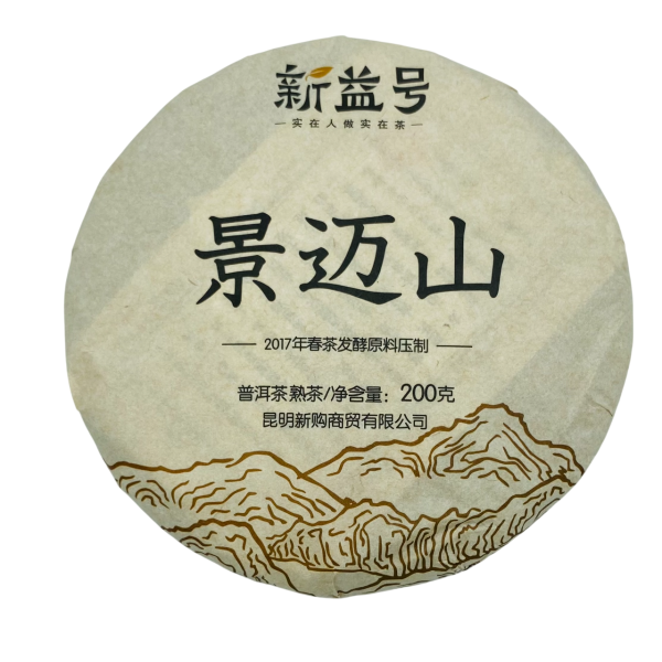 Китайський чай, шу пуер, “Гора Цзінмай”, бренду Сінь Ї Хао. Походження – чайна зона Менхай, Юньнань, Китай. Зібраний і ферментований – весна 2017 року, запакований – зима 2019 року.