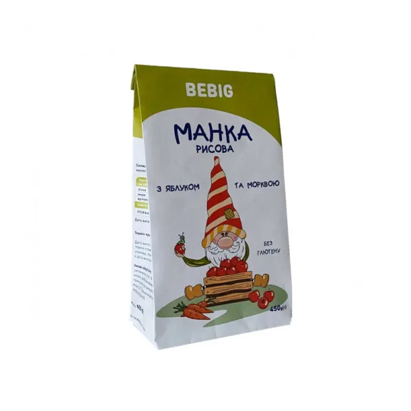 Склад: крупка рисова, яблуко сушене мелене, морква сушена мелена.