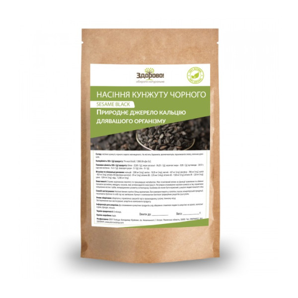 Склад: насіння чорного кунжуту сирого неочищеного. Не містить барвників, ароматизаторів, підсилювачів смаку, хімічних домішок.