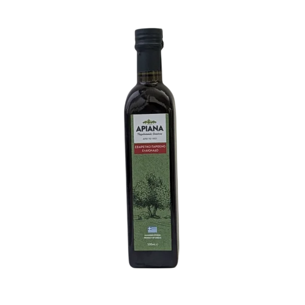 Побалуйте себе розкішним смаком і якістю з оливковою олією ARIANA, яка виготовляється з найкращих оливок, зібраних вручну в традиційних оливкових гаях Греції. Ця оливкова олія першого віджиму є символом чистоти та традицій середземноморського сільського господарства, привносячи багатий та збалансований смак на вашу кухню, який покращить будь-яку страву.