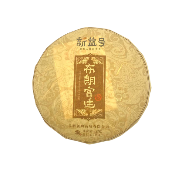 Китайський чай, шу пуер, Палац Бурої гори, торгової марки Сінь Ї Хао. Китай, Юньнань, Менхай, Бура гора. Назва фабрики: чайна фабрика Kunming Xingou Trading Co., Ltd.. Приготовлений в 2014 році, запакований в 2017 році.