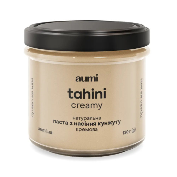 Кремова кунжутна паста (тахіні, тахіна, сезамова) "AUMI" з очищеного насіння кунжуту. Виробляється по автентичній технології з найцінніших африканських сортів кунжуту з Судану і Ефіопії. Найправильніша тахіна - саме та, яку їдять розпещені споживачі в Ізраїлі, Греції та країнах сходу. Набагато смачніше гірких аналогів з індійського кунжуту.