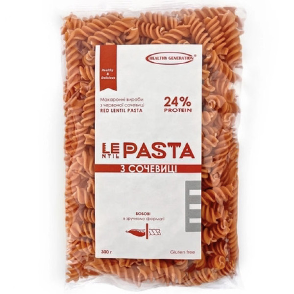 Макаронні вироби з червоної сочевиці, 300г "Healthy Generation"