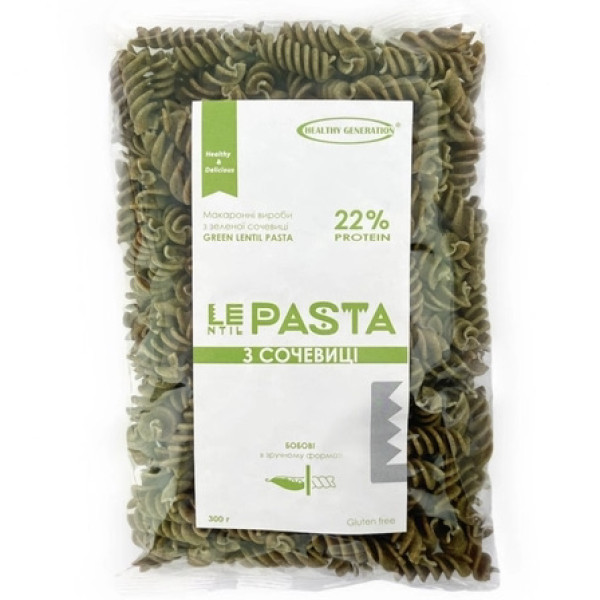 Макаронні вироби з зеленої сочевиці, 300г "Healthy Generation"