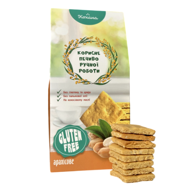 Печиво Кохана арахісове без цукру та глютену - це натуральний і поживний десерт, створений для тих, хто цінує здорове харчування без компромісів зі смаком. Його основою є добірний смажений арахіс, який надає випічці насиченого горіхового аромату, хрусткої текстури та природної солодкості без додавання цукру. Завдяки відсутності глютену, це печиво є чудовим вибором для людей із чутливістю до глютену або тих, хто дотримується спеціального харчування. Воно виготовлене з простих, натуральних інгредієнтів, що дають змогу насолоджуватися смаком без зайвих добавок і консервантів. Його текстура приємно розсипчаста, з виразною арахісовою ноткою та легким маслянистим відтінком. Печиво чудово підходить для поєднання з чаєм, кавою або рослинним молоком, створюючи ідеальний варіант для смачного перекусу.
