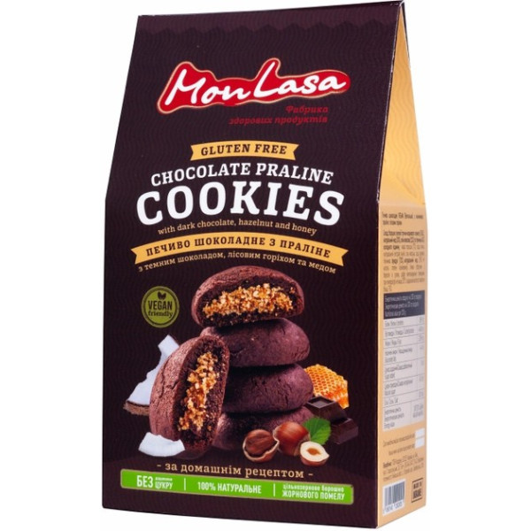 Печиво шоколадне з праліне та лісовим горіхом, 120г "Mon Lasa"