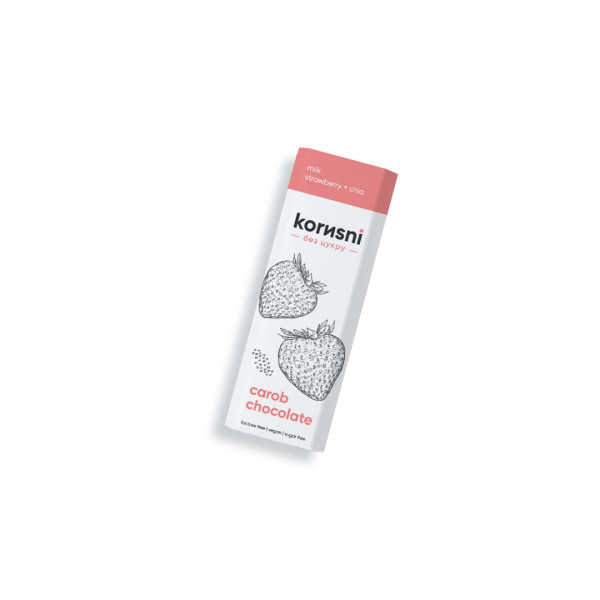 Склад: масло какао, кероб, сухе кокосове молоко, насіння чіа, сублімована полуниця, екстракт стевії