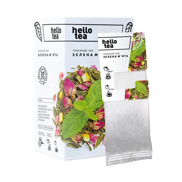 Чай в пакетах "Зелена мята" (20шт), "Hello tea"