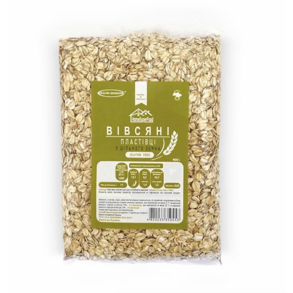Вівсяні пластівці цільнозернові, 400г "Healthy Generation"