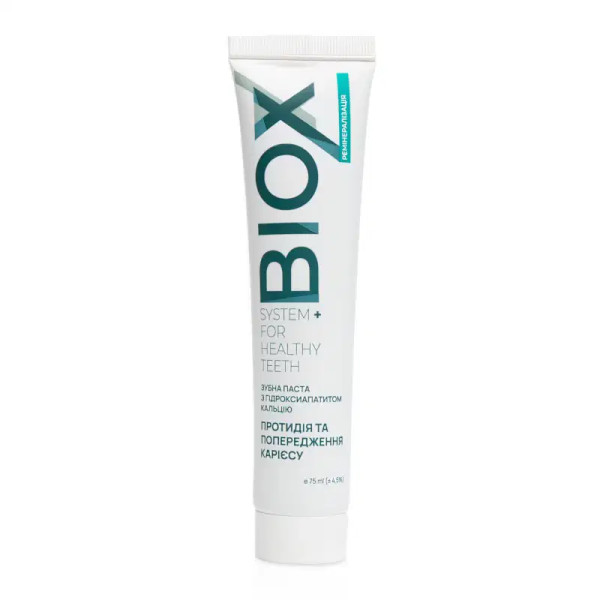 Натуральна зубна паста Biox з гідроксиапатитом кальцію — це ефективний засіб для зміцнення емалі та профілактики карієсу. Завдяки поєднанню гідроксиапатиту кальцію, екстрактів чебрецю, хвоща, спіруліни і природних мінералів, паста активно відновлює мінеральний склад емалі, знижує чутливість зубів і забезпечує надійний щоденний захист без фтору й шкідливих компонентів.